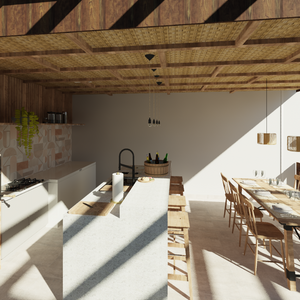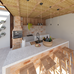 Ao entrar na residência, nossos clientes são recebidos por uma área gourmet que é uma verdadeira extensão da personalidade acolhedora da casa. A combinação de elementos naturais e uma paleta suave de cores cria um ambiente convidativo e agradável. Desfrute de momentos especiais com amigos e familiares enquanto desfruta de refeições ao ar livre em um espaço que transmite elegância e praticidade.